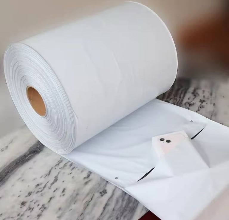 Novo saco plástico branco para envios expresso. Personalizações disponíveis quanto ao tamanho, logotipo e design de impressão.