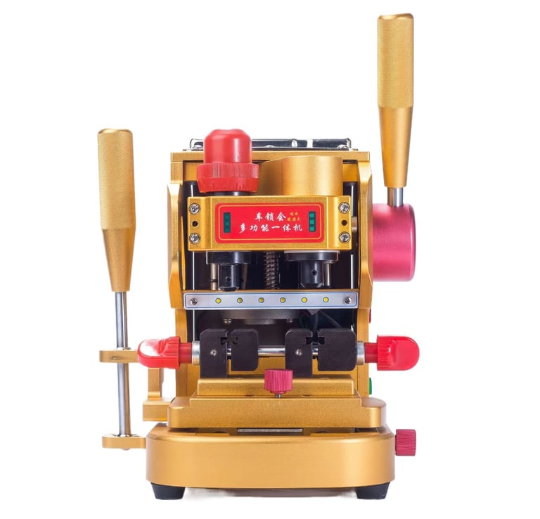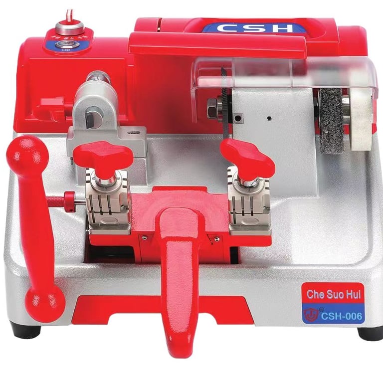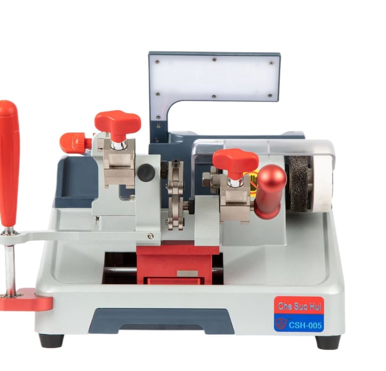 Projetada para chaves de embutir, chaves de meia-fio, chaves de cofre, cadeados e chaves Ford Tibbe. Inclui uma mandíbula paralela deslocada para chaves longas e um sistema integrado de corte, polimento e retificação em uma única máquina.