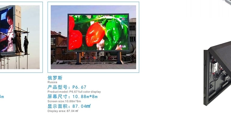 Ampla gama de displays LED para interior e exterior, disponíveis em diversos modelos e tecnologias conforme suas necessidades de uso.
