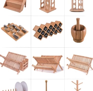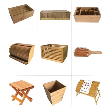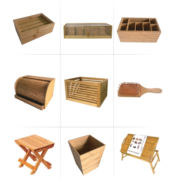 Produtos de bambu de alta qualidade e com diferentes designs.