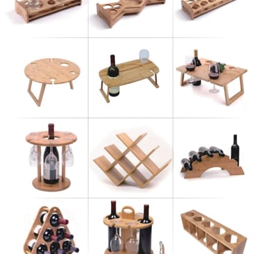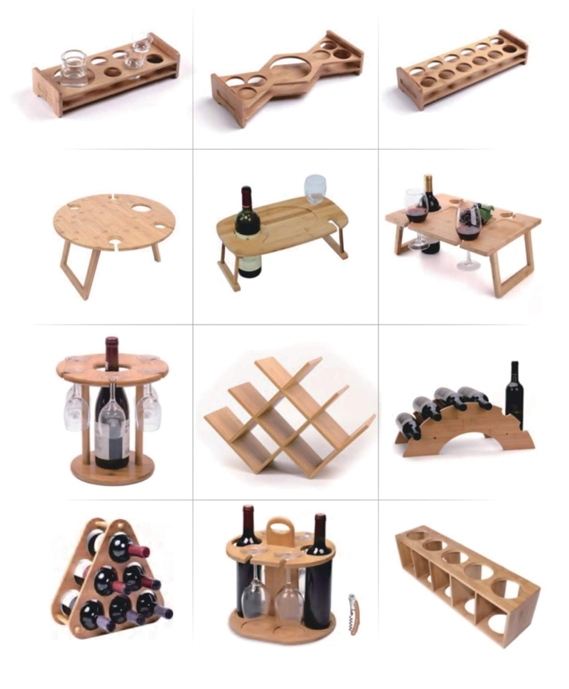 Porta-garrafas de bambu de alta qualidade e com diferentes designs.