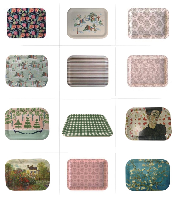 Bandejas de bambu de alta qualidade e com diferentes designs.