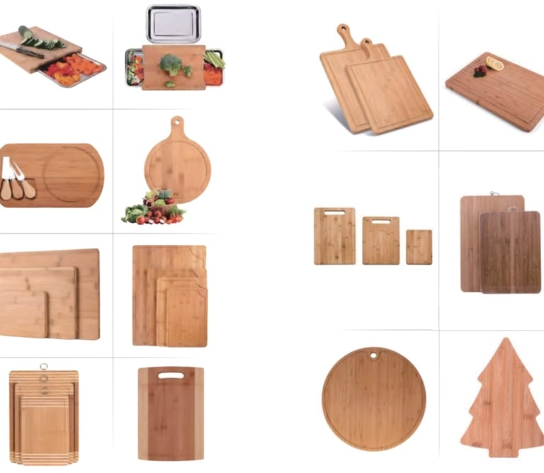 Tábuas para cortar e picar feitas de bambu de alta qualidade e com diferentes designs.