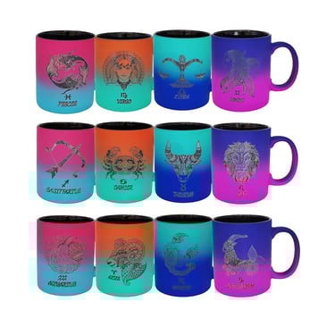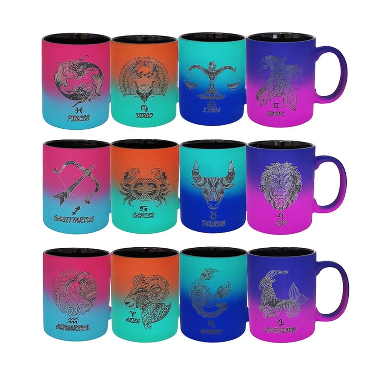 Taza de porcelana fina New Bone China, con detalles pintados y grabado láser de precisión.