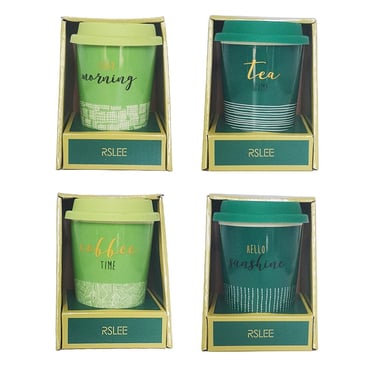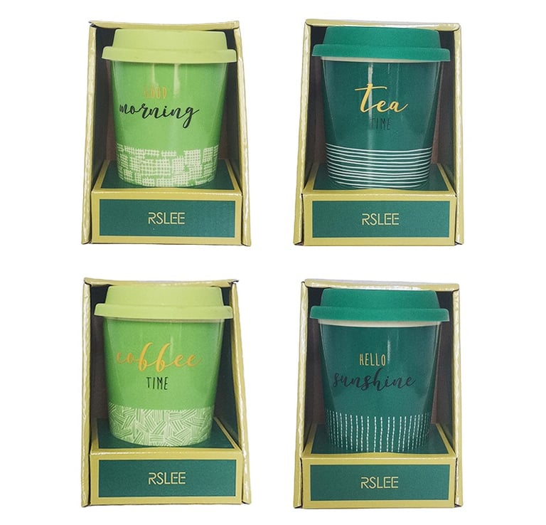 Taza de porcelana fina New Bone China con tapa de silicona resistente al calor.